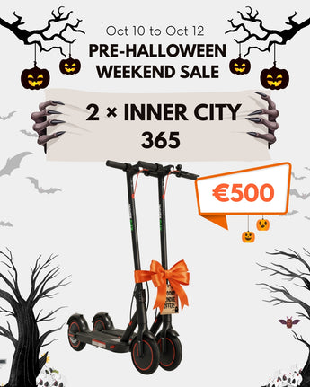 Weighing only 12.5 kg (27.5 lbs), the Inner City 365 is lightweight and easy to fold for convenient storage. With an IPX4 waterproof rating, it’s resistant to water splashes, making it a great choice for all-weather commuting. It’s the perfect scooter for those seeking an eco-friendly and efficient way to travel around the city.