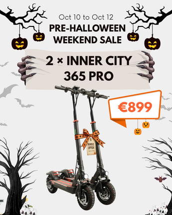 Take your daily commute to the next level with the Inner City 365 Pro, a powerful electric scooter built for performance and city convenience. Featuring a 600W motor, it reaches speeds of up to 45 km/h and covers up to 40 km on a single charge. With 10-inch tires, dual suspension, and front & rear disc brakes, it ensures a smooth, safe ride even on rougher terrain.