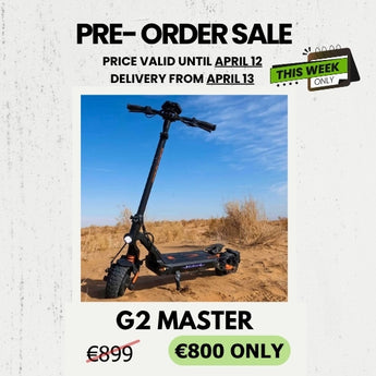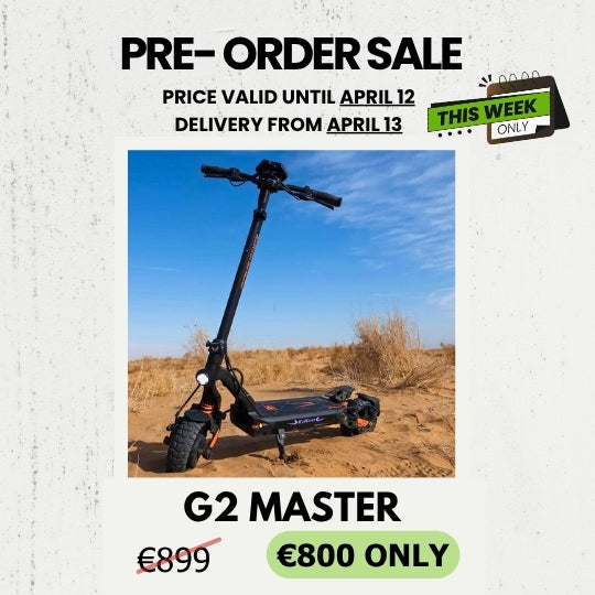 Doté de pneus tout-terrain de 10 pouces , le G2 Master aborde les terrains accidentés avec aisance, tandis que son système de freinage à disque assure un freinage fiable. Ce scooter offre également une inclinaison jusqu'à 20° , ce qui le rend idéal pour les zones vallonnées.