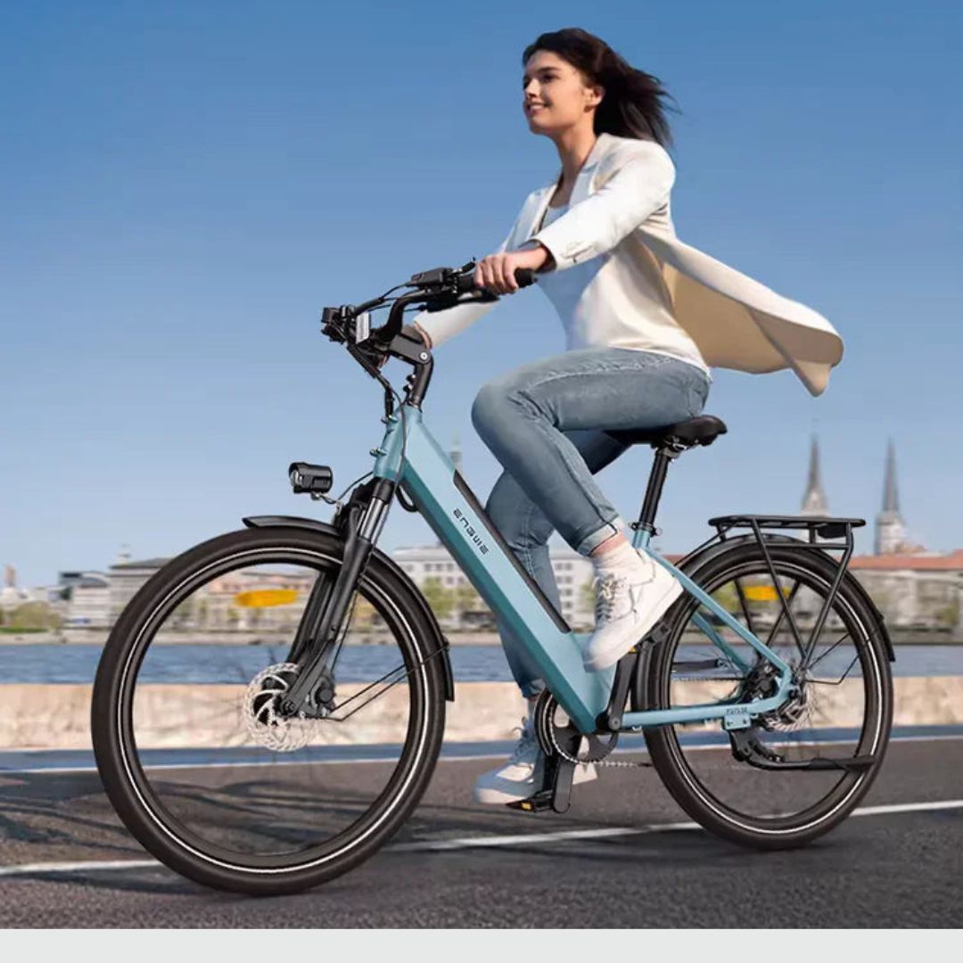 The ENGWE P275 SE is a practical and reliable city e-bike built for daily commuting and urban adventures. It features a 250 W brushless motor with 42 N·m of torque, providing smooth, responsive pedal assistance up to 25 km/h. The 36 V 13 Ah removable battery delivers up to 100 km of range on low assist mode, 80 km on medium, and 65 km on high, making it ideal for longer rides around the city. With a front suspension fork, 27.5″ × 1.95″ tires, and 160 mm hydraulic disc brakes, it offers comfort and control on varied surfaces, while the 6061 aluminum alloy frame ensures durability and agility.