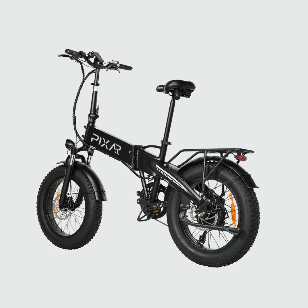 Built with a durable 6061 aluminum alloy frame and equipped with 20×4 inch Chaoyang fat tyres, the Pixar Star 1 provides stability and comfort across various terrains. The front suspension fork, Shimano 7-speed gear system, and mechanical disc brakes ensure smooth handling and reliable stopping power. Its foldable frame design, integrated front and rear lights, rear cargo rack, and IP54 water resistance make it an excellent choice for daily commuting, storage convenience, and all-weather riding.