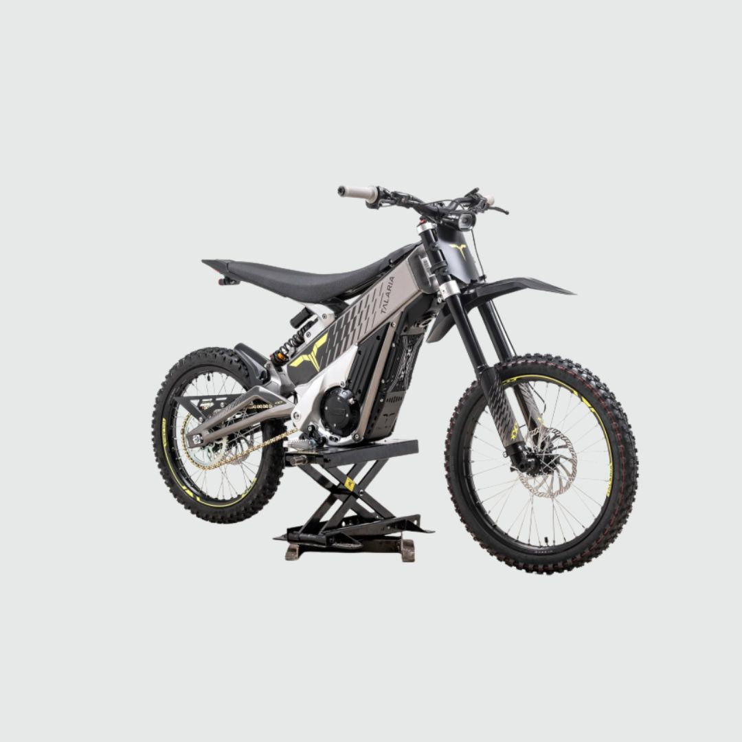 The Talaria X3 MX is a compact and powerful electric off-road motorcycle engineered for agility and performance. Powered by a 5,000W peak motor and a 60V 40Ah LG Li-ion battery, it delivers instant torque of 34 Nm and reaches a top speed of 47 mph (75 km/h). With a range of up to 50 miles (80 km) on a single charge, the X3 MX combines lightweight handling with serious off-road capability. Built on a 6061 T4 & T6 aluminum alloy frame, it features Talaria Hi-Performance suspension, 4-piston hydraulic disc brakes, and a durable belt/chain dual-drive system for optimal power transfer. Weighing just 55 kg, this electric MX machine is designed for riders who want speed, control, and reliability on any terrain.